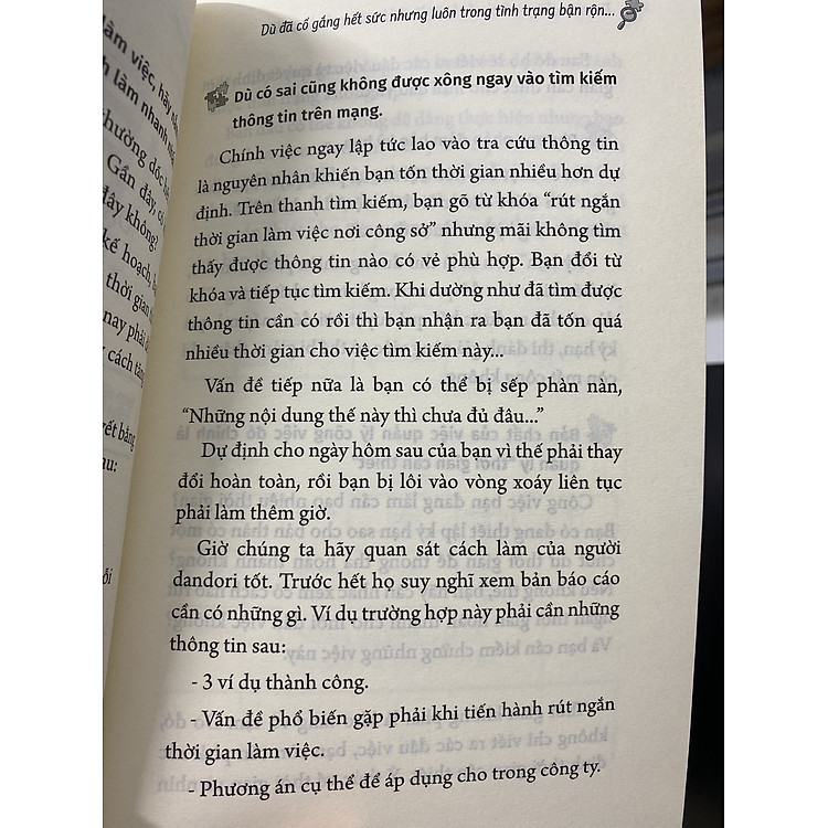 Nói nôm na là, cuốn sách này sẽ hướng dẫn bạn cách chuẩn bị và sắp xếp công việc một cách hiệu quả. Tác giả Iba Masayasu không chỉ đơn thuần lý giải lý thuyết, mà còn tạo ra những sơ đồ tóm tắt sinh động giúp bạn dễ dàng nắm bắt nội dung. Ghi nhớ cho tôi một từ khóa: Dandori. Đây là năng lực đặc biệt mà người Nhật rất coi trọng – khả năng lên kế hoạch một cách khoa học và thực tế.