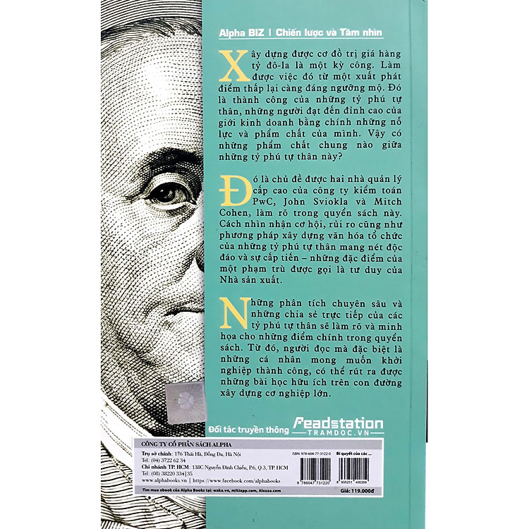 Với lối viết cuốn hút, Bí Quyết Của Các Tỷ Phú Tự Thân Lập Nghiệp (Tái Bản) dẫn dắt độc giả từng bước khám phá và chiêm nghiệm về khởi nghiệp. Trong bài viết này, bạn sẽ được cung cấp đầy đủ thông tin: từ tác giả, nội dung, cho tới đánh giá thực tế từ người đọc. Hãy bắt đầu bằng phần thông tin kỹ thuật như số trang, ngôn ngữ và ISBN.
