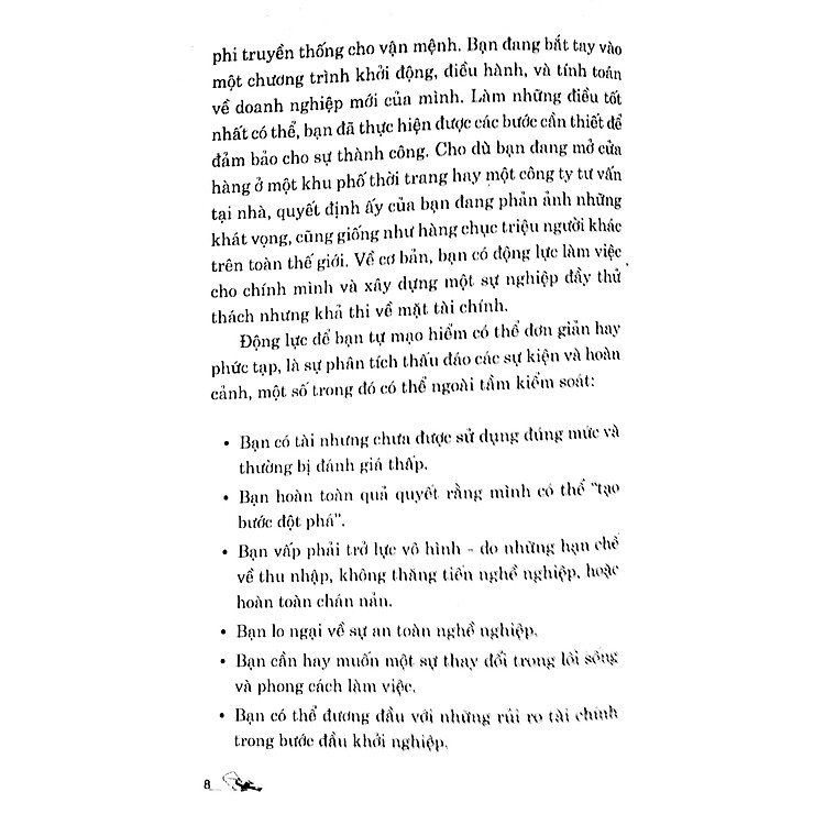 Nói nôm na là, “Bí Quyết Dành Cho Người Khởi Nghiệp” sẽ chỉ cho bạn những điều cơ bản cần biết khi bắt đầu hành trình khởi nghiệp. Từ việc chọn lĩnh vực kinh doanh, lập kế hoạch cho đến phân tích tài chính, tuyển dụng hay marketing, cuốn sách này sẽ hướng dẫn bạn từng bước một. Nếu bạn nghĩ rằng khởi nghiệp chỉ dành cho những người có đủ vốn hay kiến thức, thì bạn đã nhầm!