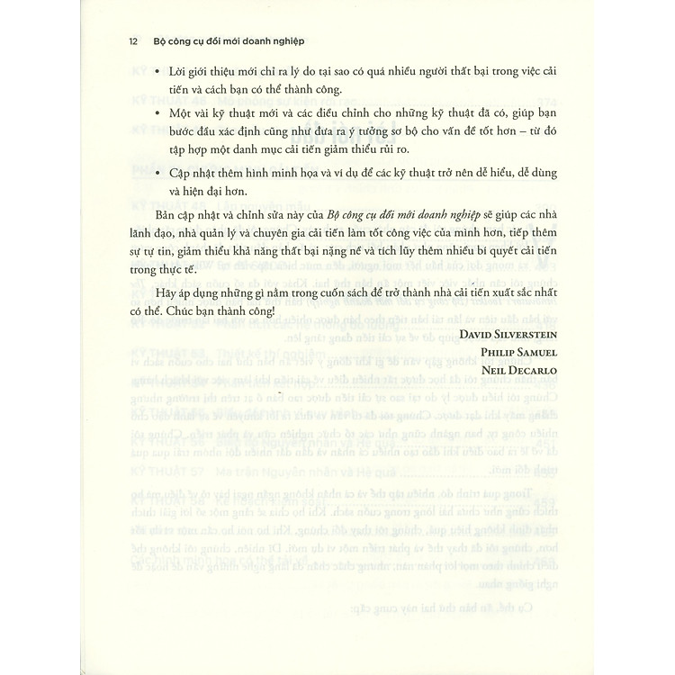 Trong thế giới kinh doanh đầy biến động ngày nay, câu hỏi “Làm thế nào để đổi mới và phát triển?” luôn thường trực trong tâm trí của nhiều nhà lãnh đạo và quản lý. Có lẽ bạn cũng đã từng cảm thấy áp lực khi phải tìm ra những giải pháp sáng tạo, nhưng lại không biết bắt đầu từ đâu? “Bộ Công Cụ Đổi Mới Doanh Nghiệp” sẽ là một người bạn đồng hành đắc lực, giúp bạn định hình lại tư duy và áp dụng những kỹ thuật cần thiết để thúc đẩy doanh nghiệp của mình tiến xa hơn. Cuốn sách này sẽ giúp bạn khám phá những cơ hội cải tiến và cách thức khả thi để hiện thực hóa những ý tưởng đột phá.