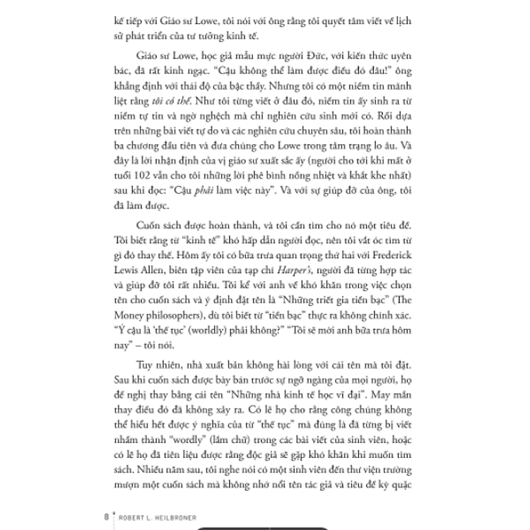 Robert L. Heilbroner không phải tay mơ đâu. Ông là một nhà kinh tế học và nhà sử học kinh tế nổi tiếng, có ảnh hưởng lớn đến nhiều thế hệ. Cuốn sách này chính là tác phẩm nổi tiếng nhất của ông, giúp nhiều người nhận ra sức mạnh của tư tưởng kinh tế đối với sự phát triển xã hội.