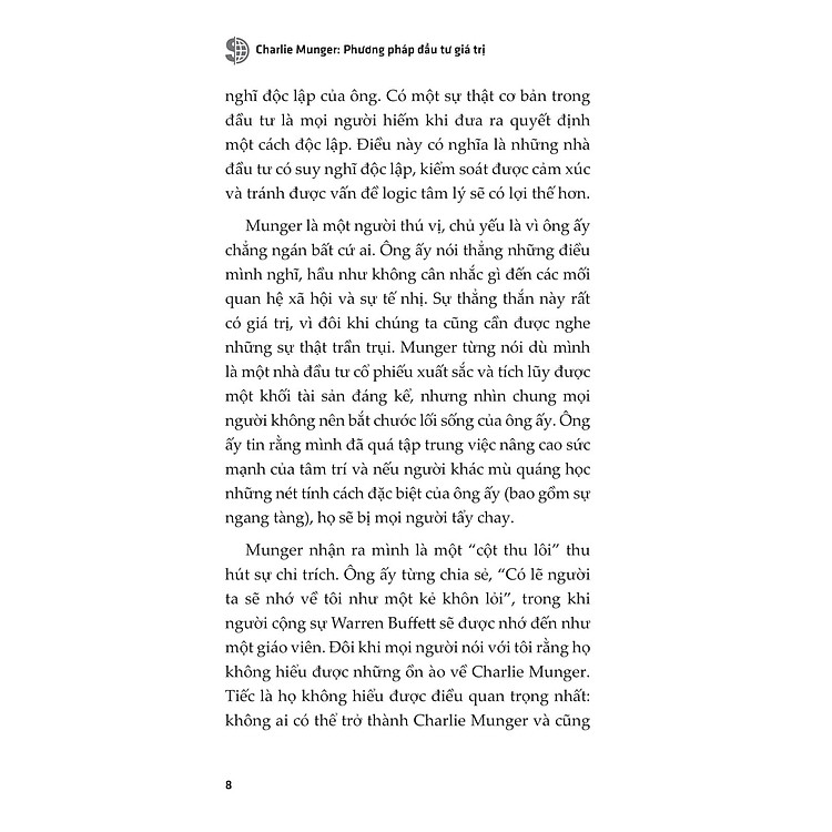 - Cuốn sách “Charlie Munger – Phương Pháp Đầu Tư Giá Trị” của Tren Griffin giới thiệu chiến lược đầu tư thành công của Charlie Munger, phó Chủ tịch Berkshire Hathaway.