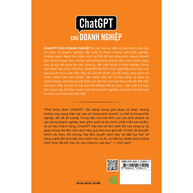 Công nghệ đột phá: Tác giả nhấn mạnh về việc ChatGPT không chỉ là một công cụ mà còn là một cơ hội giúp doanh nghiệp phát triển nhanh chóng. Nếu bạn đang tìm cách để đổi mới, đừng bỏ qua!