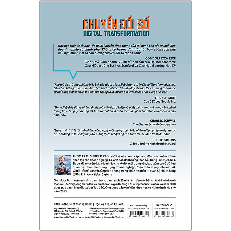 “Chuyển Đổi Số” là tác phẩm mà Tom Siebel đã dày công nghiên cứu để phân tích một trong những thách thức lớn nhất mà các tổ chức hiện đại phải đối mặt. Ông không chỉ đơn thuần đưa ra lý thuyết mà còn khéo léo làm sáng tỏ sự kết hợp của bốn loại công nghệ chủ chốt: điện toán đám mây, dữ liệu lớn, trí tuệ nhân tạo và kết nối vạn vật. Những công nghệ này đang tạo ra một cuộc cách mạng, khiến cho nhiều ngành công nghiệp phải thay đổi hoặc đối mặt với sự tuyệt chủng. Cuốn sách giúp độc giả hiểu rõ hơn về Chuyển Đổi Số và những ứng dụng thực tiễn mà nó mang lại, mở ra những cơ hội mà chỉ cách đây không lâu, chúng ta chưa thể hình dung được.
