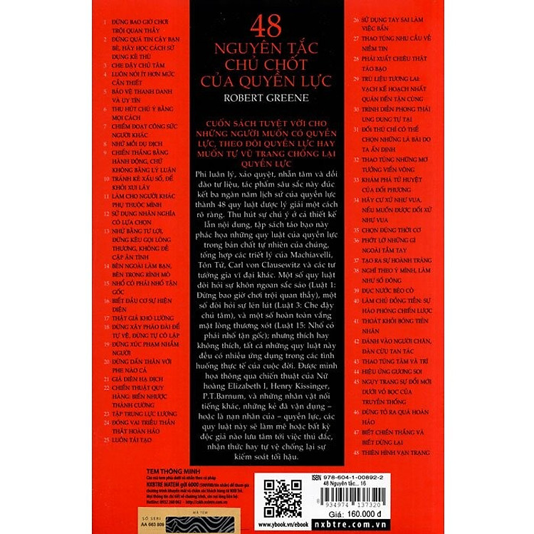 - “48 Nguyên Tắc Chủ Chốt Của Quyền Lực” phân tích các quy luật quyền lực được rút ra từ lịch sử nhân loại.