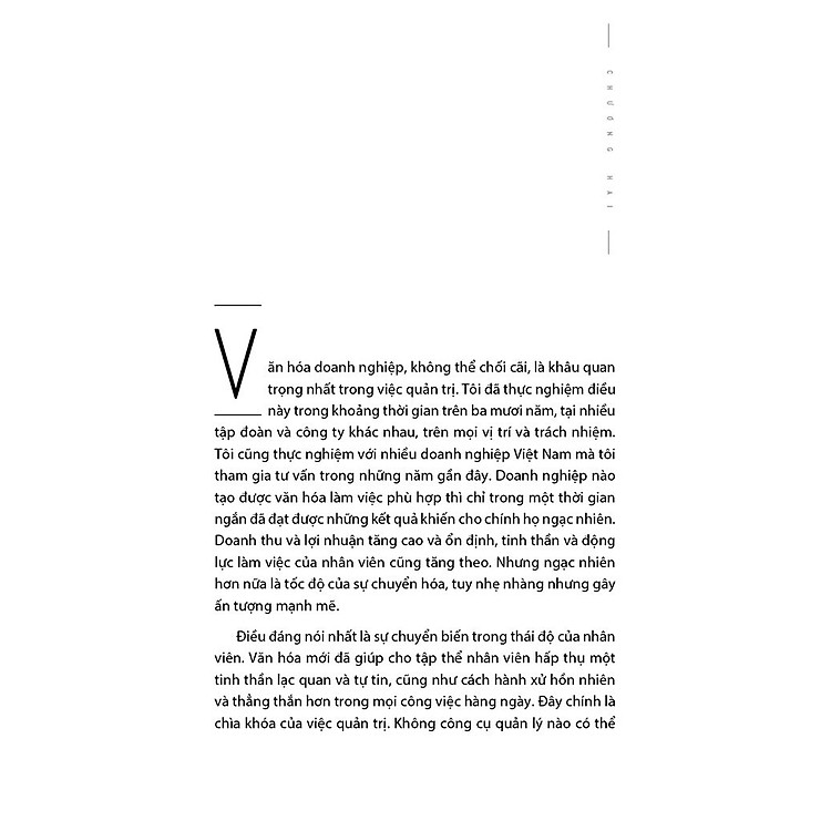 Ba phong cách văn hóa doanh nghiệp: Tác giả đề cập đến ba phong cách mà ông đã áp dụng trong quản trị. Nghe đơn giản nhưng lại khó áp dụng đấy, vì mỗi doanh nghiệp là một câu chuyện riêng!