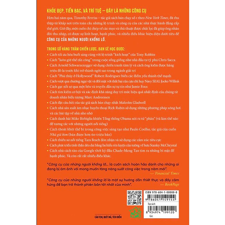 - Tác giả Timothy Ferriss phỏng vấn hơn 200 người xuất chúng để tổng hợp công cụ và chiến thuật thành công.