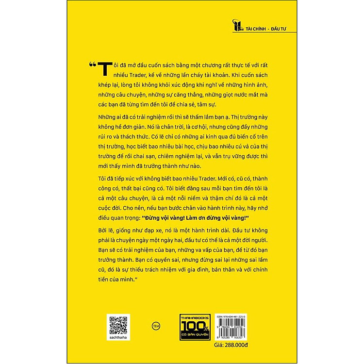 Tâm lý trader: Cuốn sách nhấn mạnh rằng, niềm tin vào bản thân là yếu tố quyết định. Tác giả khuyến khích người đọc không bỏ cuộc sau những lần vấp ngã, mà hãy coi đó là một phần không thể thiếu trong hành trình đầu tư.