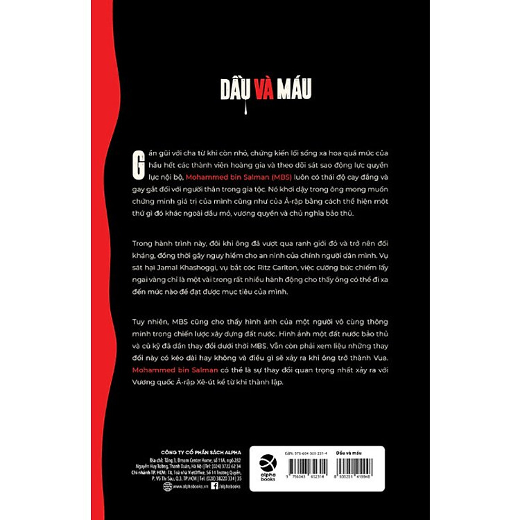 - Tên sách: Dầu và Máu – Mohammed Bin Salman Và Tham Vọng Tái Thiết Kinh Tế Ả-Rập (Bìa Cứng).