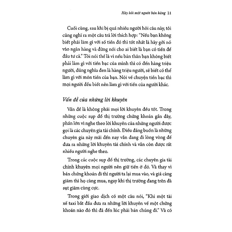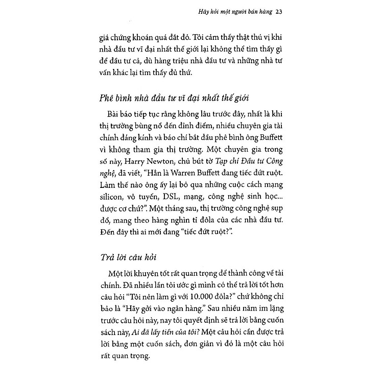 - Cách tư duy mới mẻ: Cuốn sách khuyến khích bạn suy nghĩ khác đi về tiền và đầu tư, cái này nghe có vẻ hơi lý tưởng nhưng đáng để thử nghiệm.