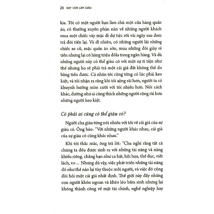Cuốn sách này thực sự làm bạn suy nghĩ về cách mà bạn tiếp cận với tiền bạc và giá trị sống. “Có nhiều cách để bạn kiếm được những đồng tiền tích cực, vấn đề là bạn có chịu thay đổi và sẵn lòng trả giá hay không?” Hãy thử đọc nó và xem bạn có tìm thấy điều gì cho riêng mình không nhé!