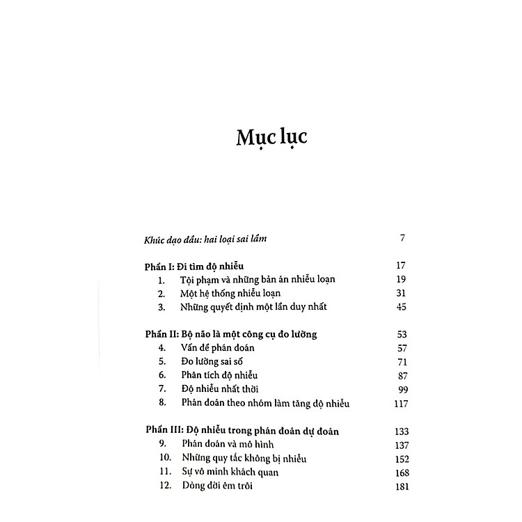 Với những ví dụ cụ thể, cuốn sách khắc họa rõ nét tác động tiêu cực của độ nhiễu và cách mà chúng ta có thể nhận biết và giảm thiểu nó để đưa ra những quyết định thông minh hơn.
