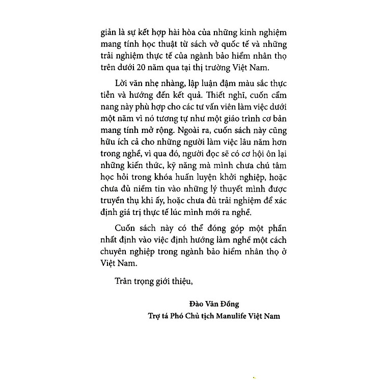 Cuốn sách này thật sự là một món quà cho những ai đang tìm kiếm một định hướng rõ ràng trong nghề tư vấn bảo hiểm. Nó không chỉ là kiến thức, mà còn là những trải nghiệm quý báu giúp bạn tự tin hơn trong công việc. “Trao giải pháp, không chỉ bán bảo hiểm.”