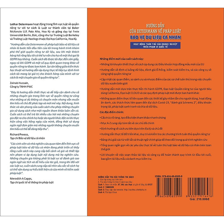 “Sách hướng dẫn của Determan là nguồn tư liệu không thể thiếu cho những ai quan tâm đến bảo vệ dữ liệu và muốn thực hiện các quy định về pháp luật một cách chính xác và hiệu quả.”