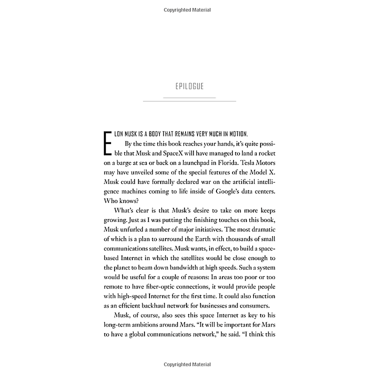 Chắc hẳn bạn sẽ cảm thấy phấn khích khi đọc những quyết định táo bạo của Musk, như việc quyết định phát triển tên lửa tái sử dụng hay xe điện với tầm nhìn giúp giảm thiểu khí thải toàn cầu.