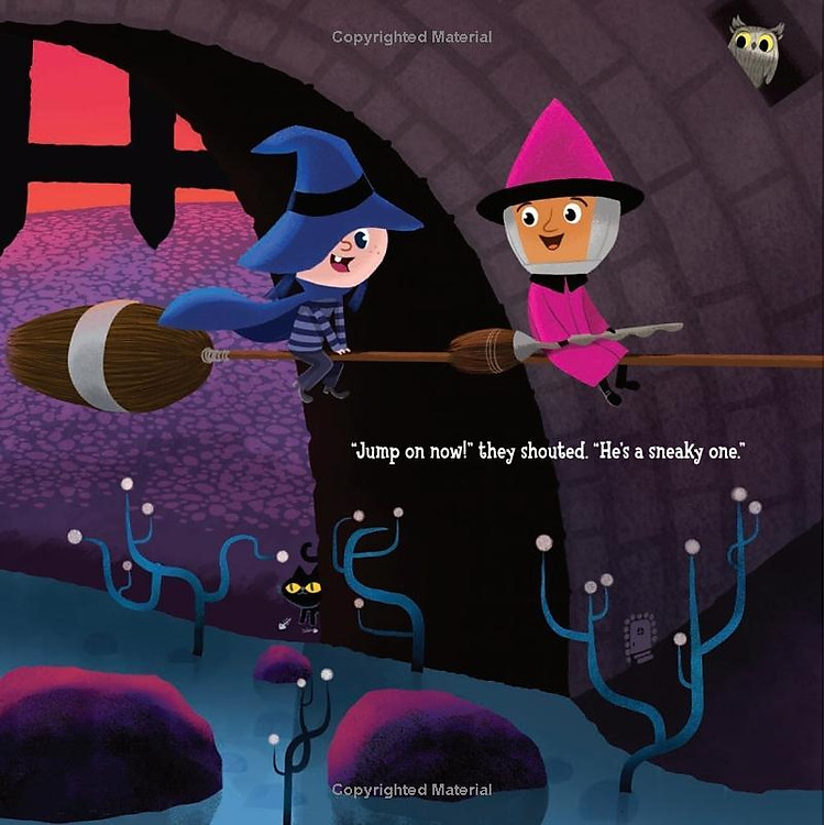 Young readers will want to fly the night sky with the ten little witches in this bright and adventurous Halloween story. Whether zooming past rattling skeletons, buzzing by pie-stealing mummies, or soaring over a werewolf with bad breath, this exciting group of witches and their high-flying Halloween adventures will have readers cheering! Plus, play a game of I Spy and find the cat and owl on every page!
