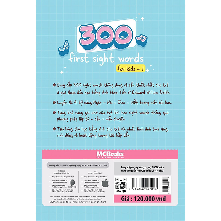 + Nhằm giúp trẻ em học dễ đọc viết và nghe nói tiếng Anh cơ bản, cuốn sách “300 First Sight Words For Kids – 1” do Công ty cổ phần sách MCBooks phát hành có những điểm nổi bật sau: