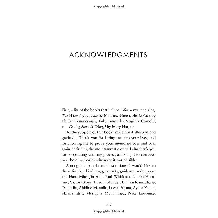 - Tựa sách: “A Moonless, Starless Sky: Ordinary Women and Men Fighting Extremism in Africa”