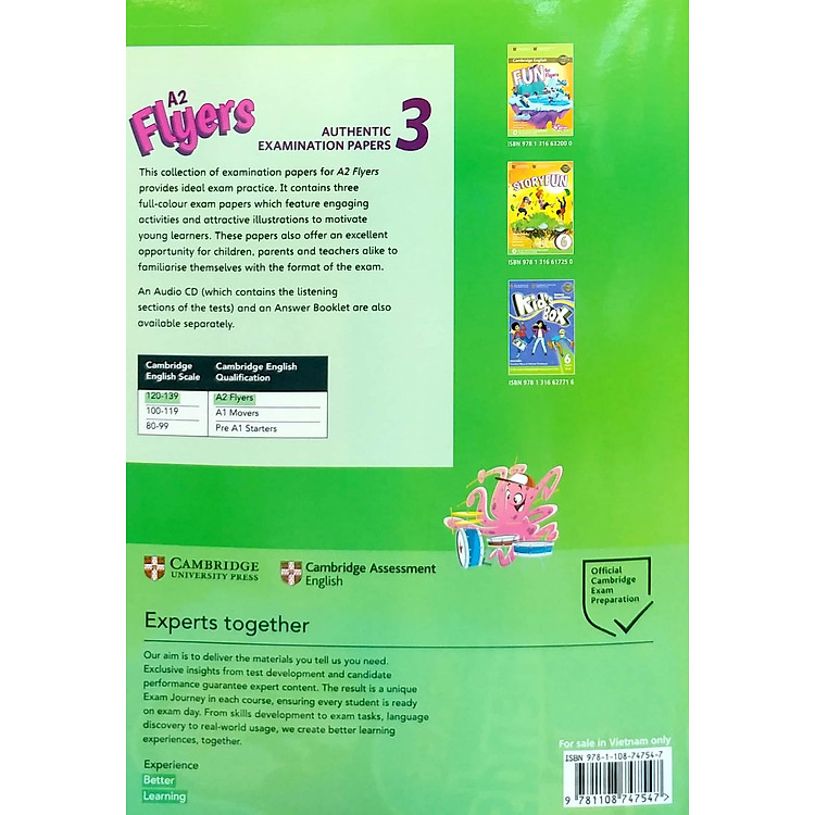 - Sách A2 Flyers 3 Student’s Book: Authentic Examination Papers dành cho học viên chuẩn bị thi Pre A1 Starters, A1 Movers và A2 Flyers.