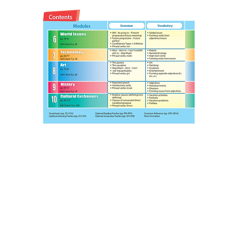 - Các mô-đun bao gồm đơn vị chủ đề, văn bản đọc phong phú, thực hành viết và hội thoại thực tế.
