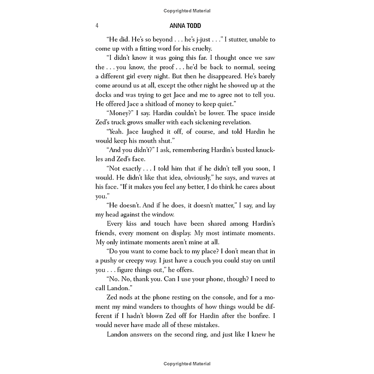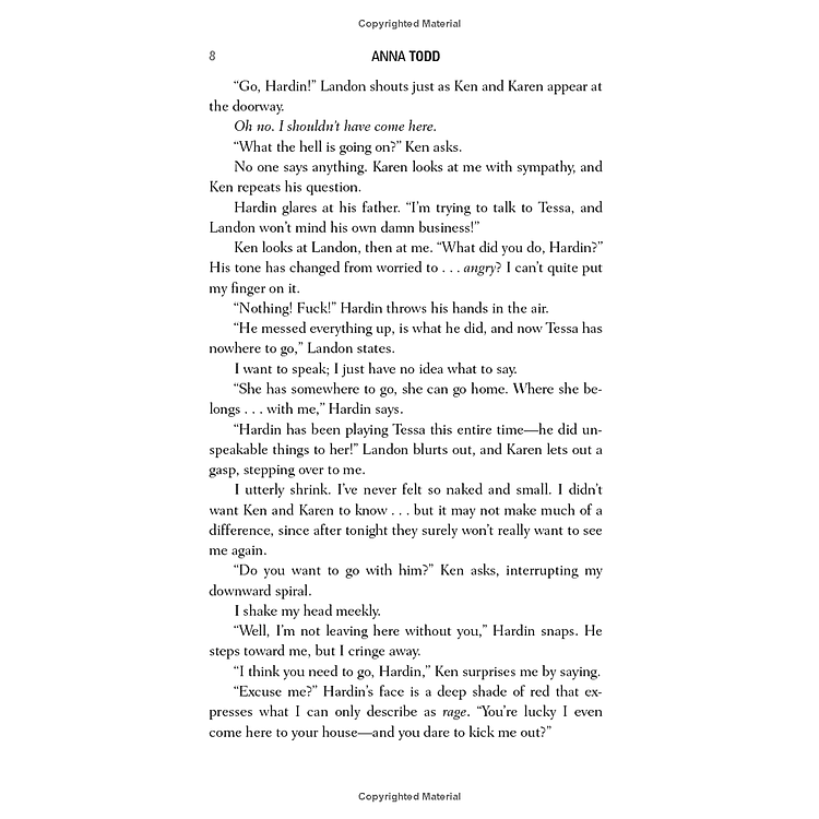 Hardin will always But is he really the deep, thoughtful guy Tessa fell madly in love with despite his angry exterior—or has he been a stranger all along? She wishes she could walk away. It’s just not that easy. Not with the memory of passionate nights spent in his arms. His electric touch. His hungry kisses.