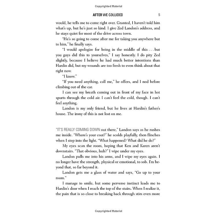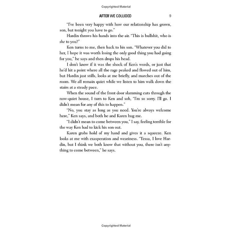 Still, Tessa’s not sure she can endure one more broken promise. She put so much on hold for Hardin—school, friends, her mom, a relationship with a guy who really loved her, and now possibly even a promising new career. She needs to move forward with her life.