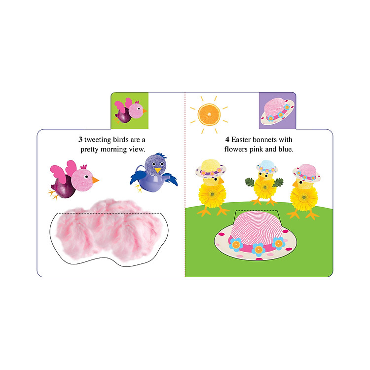 - Nội dung: Sách học đếm vui nhộn với chủ đề lễ Phục Sinh, kết hợp thơ vui và hình ảnh sáng tạo từ dấu vân tay.