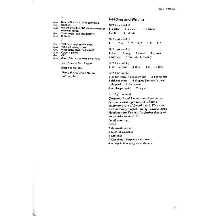 - Sản phẩm: Cambridge English Movers 1 for Revised Exam from 2018 Ans Booklet.
