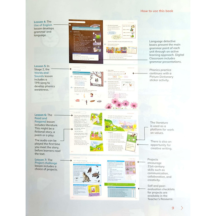 - Phương pháp học tập: Cung cấp các hoạt động phát triển kiến thức về ngữ âm và kỹ năng ngôn ngữ qua ‘tip boxes’.