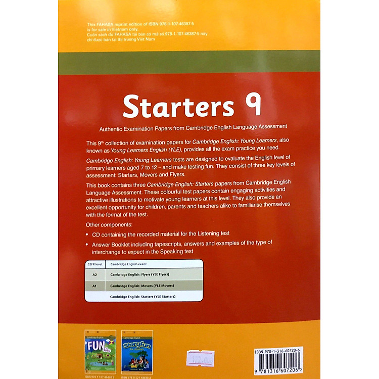 - Sách Cambridge Young Learner English Test Starters 9 dành cho học sinh tiểu học từ 7-12 tuổi.