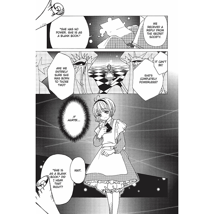 Lately, Sakura has been finding herself surrounded by mysterious magic that’s much bigger than the Clow Cards. A spark-filled force field keeps her from getting close to Syaoran, and she even starts to sense her late mother’s presence. Then, an unknown magic causes Sakura to shrink in size, and seems to transport her into a children’s storybook. Now how will she ever find her way back home?!