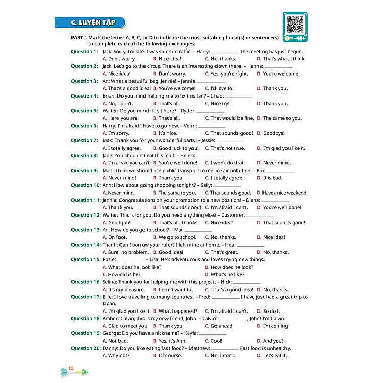 - Kèm theo mã code ebook, ứng dụng làm bài trên thiết bị thông minh và tập âm thanh MP3.