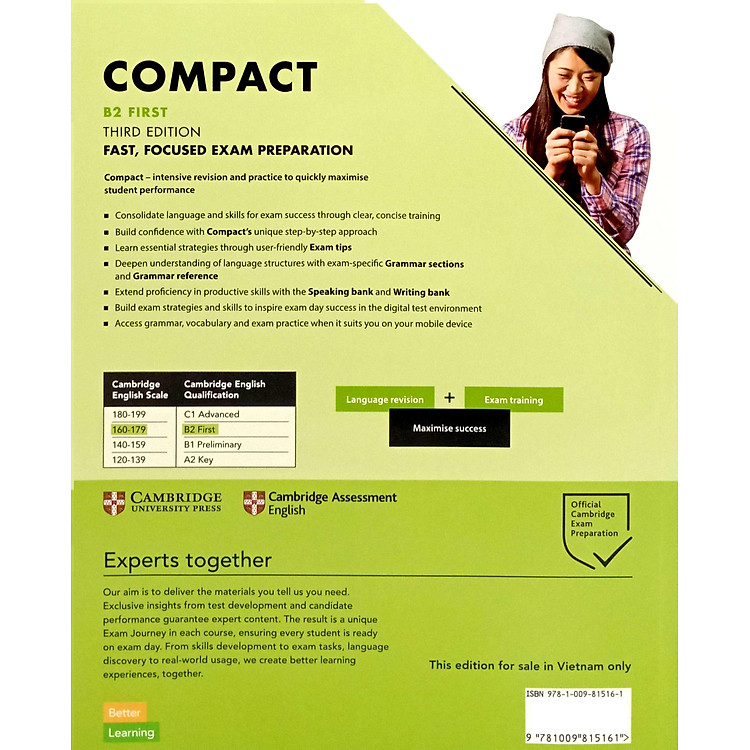 - Sách Compact B2 – Student Book Without Answers (3rd Edition) giúp chuẩn bị nhanh chóng cho kỳ thi B2 First.