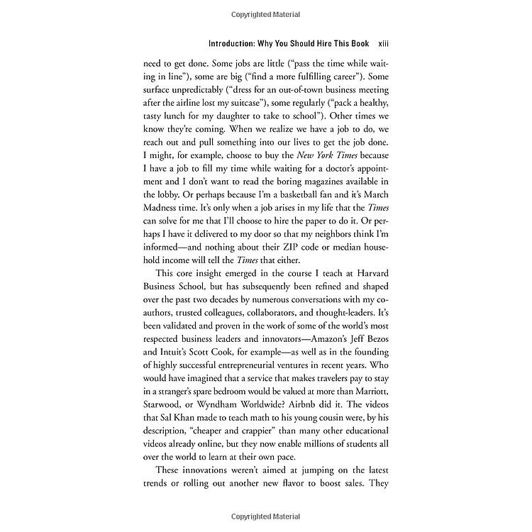 After years of research, Christensen has come to one critical conclusion: our long held maxim—that understanding the customer is the crux of innovation—is wrong. Customers don’t buy products or services; they “hire” them to do a job. Understanding customers does not drive innovation success, he argues. Understanding customer jobs does. The “Jobs to Be Done” approach can be seen in some of the world’s most respected companies and fast-growing startups, including Amazon, Intuit, Uber, Airbnb, and Chobani yogurt, to name just a few. But this book is not about celebrating these successes—it’s about predicting new ones.