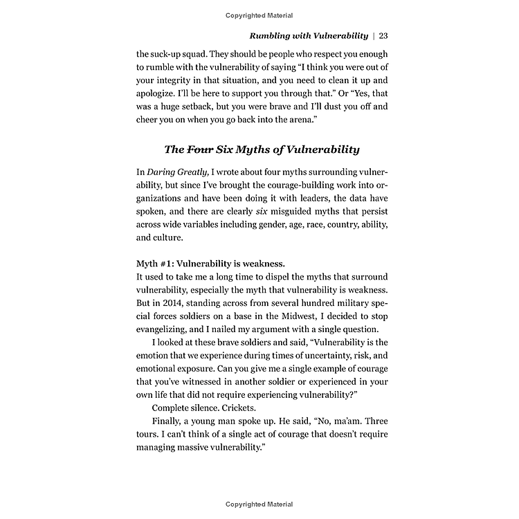 But daring leadership in a culture that’s defined by scarcity, fear and uncertainty requires building courage skills, which are uniquely human. The irony is that we’re choosing not to invest in developing the hearts and minds of leaders at the same time we’re scrambling to figure out what we have to offer that machines can’t do better and faster. What can we do better? Empathy, connection and courage to start.