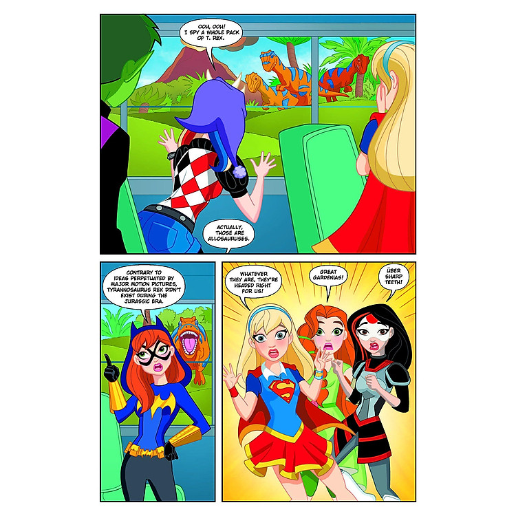 The students of Super Hero High go on a one-of-a-kind field trip that will allow them to learn about the past, up close and personal! In fact, they will be in the past! After a time-machine mishap, Harley Quinn, Wonder Woman, Supergirl, Batgirl and company find themselves in the Jurassic period! But how will their time in the past affect their future? Find out in the latest title in the hit all-ages graphic novel series!