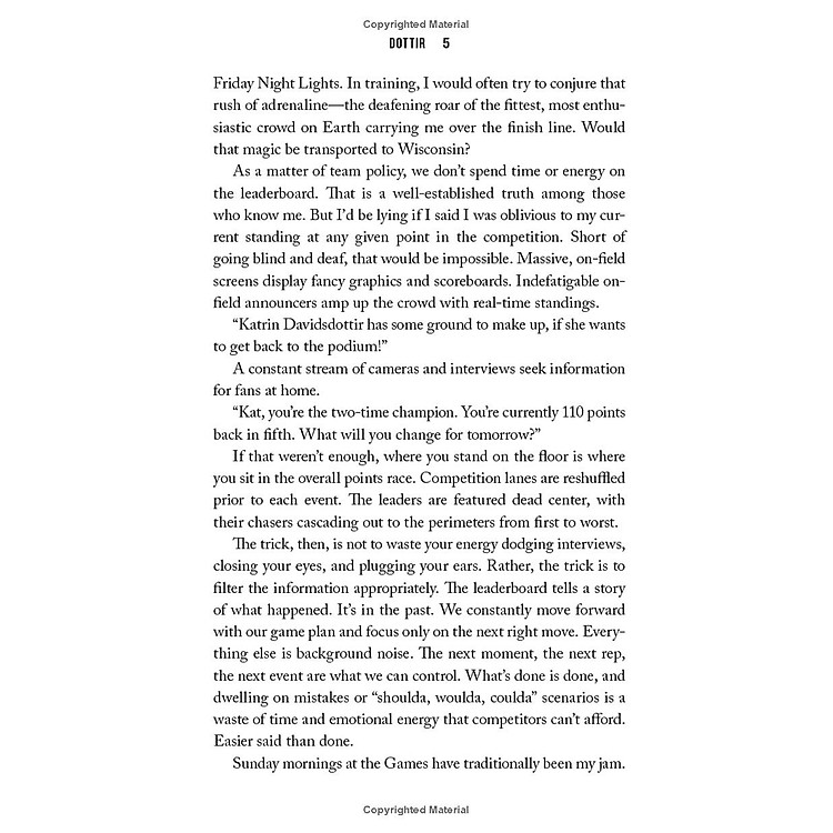 - Nội dung: Hồi ký truyền cảm hứng về hành trình của Davidsdottir trong thể thao CrossFit.