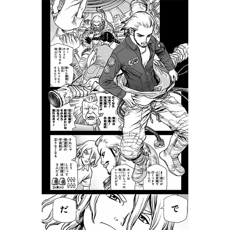 人類石化後の地球に帰還した千空の父・百夜。数千年の時を超え息子へ遺したのは…。一方、司帝国の刺客による襲撃を受けた千空たち。緊急事態の中、村を守るため最強の武器“科学の刃”の開発に取り掛かる!!