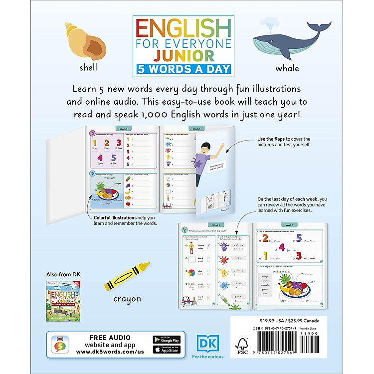 - Sách “English For Everyone Junior: 5 Words A Day” dạy trẻ em từ 6-9 tuổi 1,000 từ vựng tiếng Anh cơ bản.