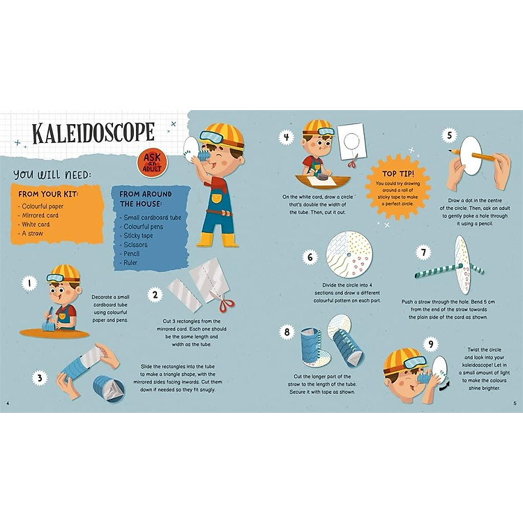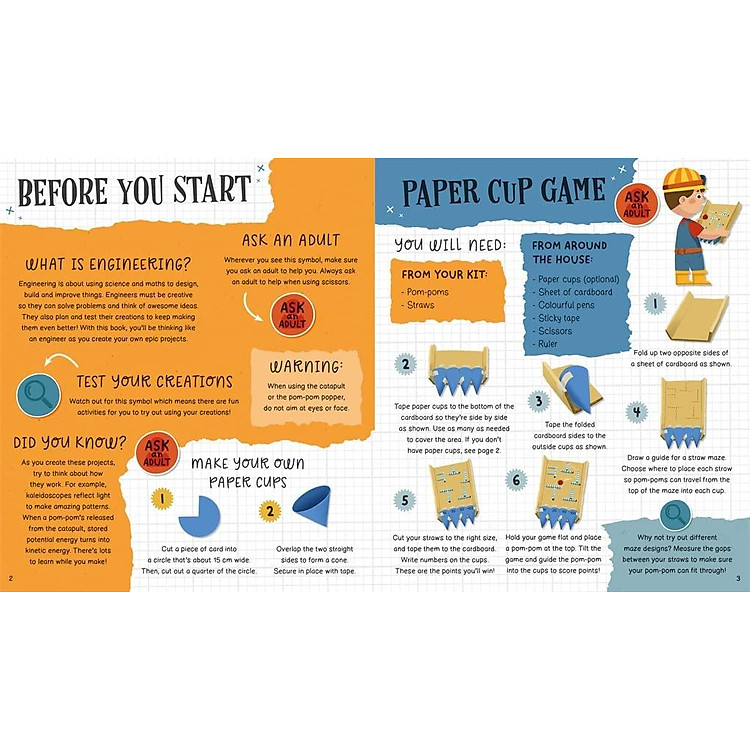 Learn to build 10 epic engineering projects! Combine the included items with things from around the house to create a catapult, a pom-pom popper and even a kaleidoscope! Little engineers will love this awesome kit.