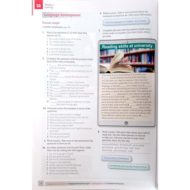 - Phần Speaking chuyên biệt: Cung cấp video thực hành và hoạt động giúp sinh viên làm quen với kỳ thi Speaking.