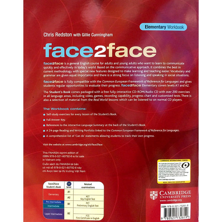 - Sách bài tập Face2Face Elementary cung cấp thêm bài tập cho tất cả ngôn ngữ trong sách học sinh.