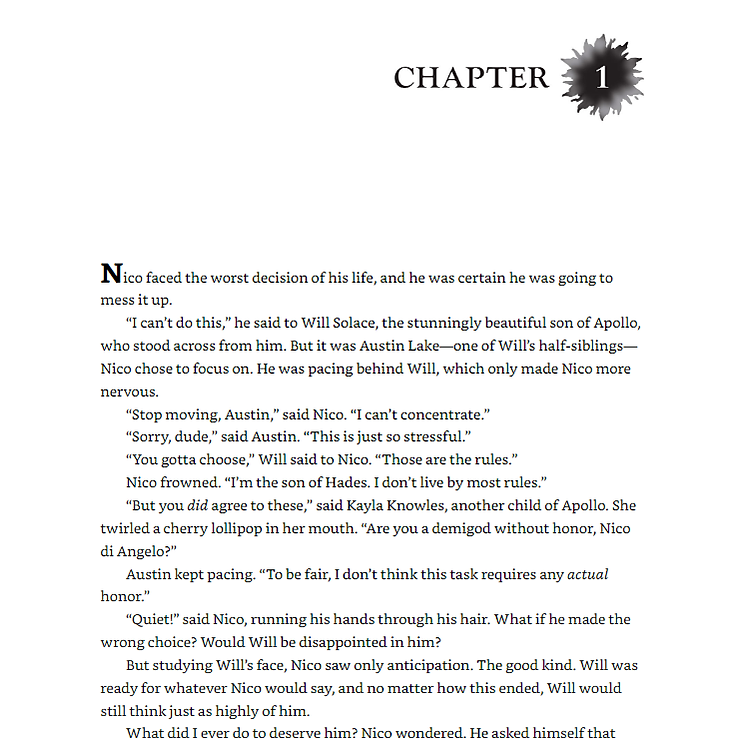 Nico will have to face demons both internal and external as his relationship with Will is tested to the core in this standalone adventure featuring two of the most popular characters in the Percy Jackson saga.