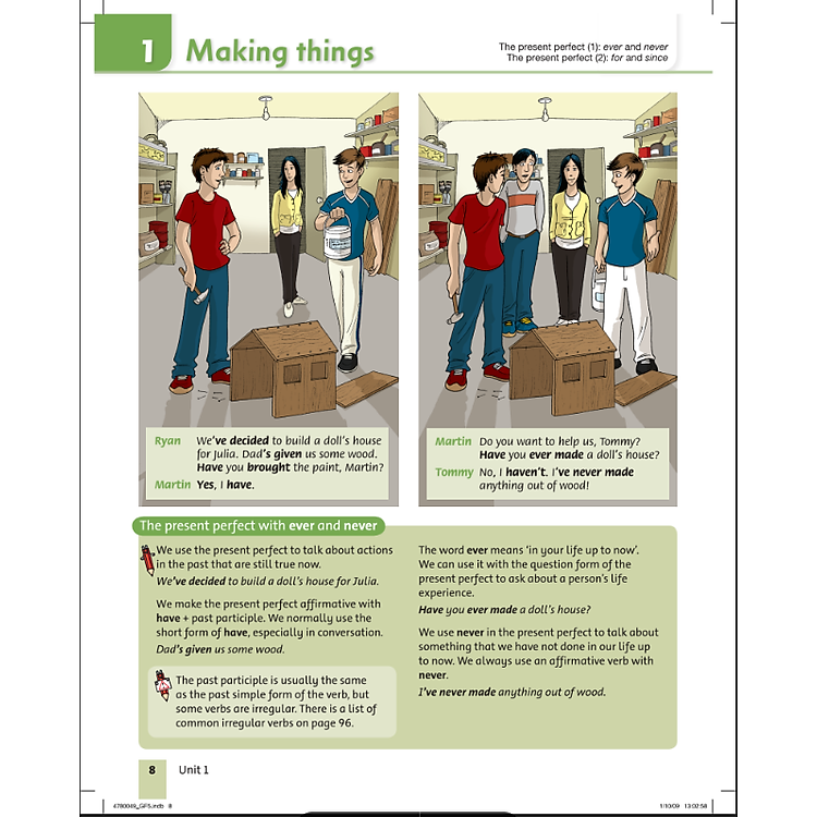 - Nội dung chính: Bao gồm Reviews, Grammar Reference và bảng động từ bất quy tắc.