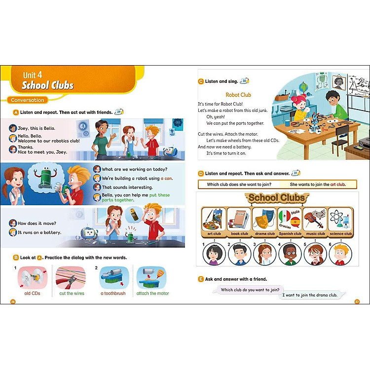 - Kết hợp từ vựng và ngữ pháp phát triển bền vững với các mục tiêu chức năng của Khung tham chiếu chung châu Âu (CEFR) và bài kiểm tra tiếng Anh cho trẻ em (YLE).