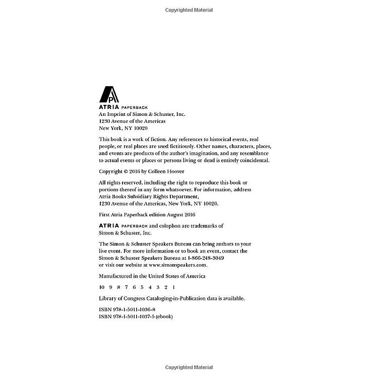 As questions about her new relationship overwhelm her, so do thoughts of Atlas Corrigan—her first love and a link to the past she left behind. He was her kindred spirit, her protector. When Atlas suddenly reappears, everything Lily has built with Ryle is threatened.