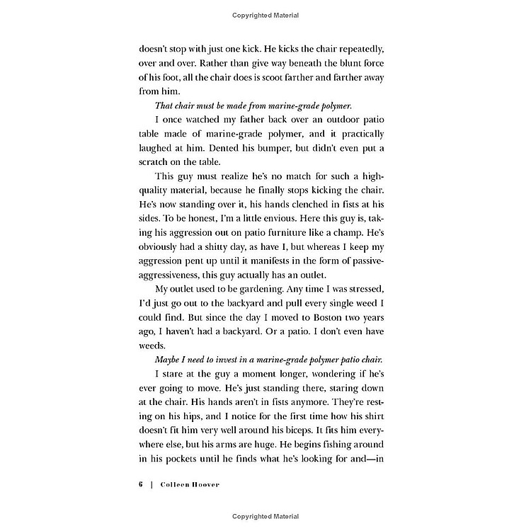 Lily hasn’t always had it easy, but that’s never stopped her from working hard for the life she wants. She’s come a long way from the small town in Maine where she grew up—she graduated from college, moved to Boston, and started her own business. So when she feels a spark with a gorgeous neurosurgeon named Ryle Kincaid, everything in Lily’s life suddenly seems almost too good to be true.