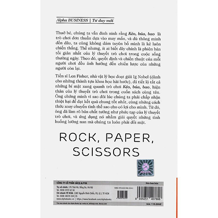 - Tên sản phẩm: Kéo búa bao: Lý thuyết trò chơi trong cuộc sống thường ngày (Tái bản 2018)
