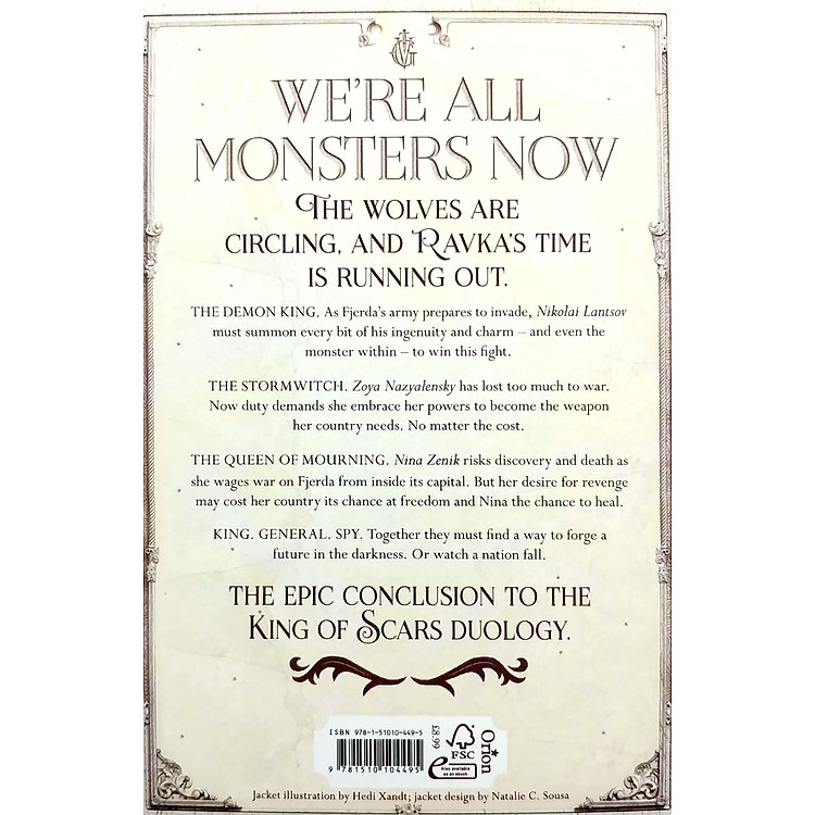 The Demon King. As Fjerda’s massive army prepares to invade, Nikolai Lantsov will summon every bit of his ingenuity and charm – and even the monster within – to win this fight. But a dark threat looms that cannot be defeated by a young king’s gift for the impossible.