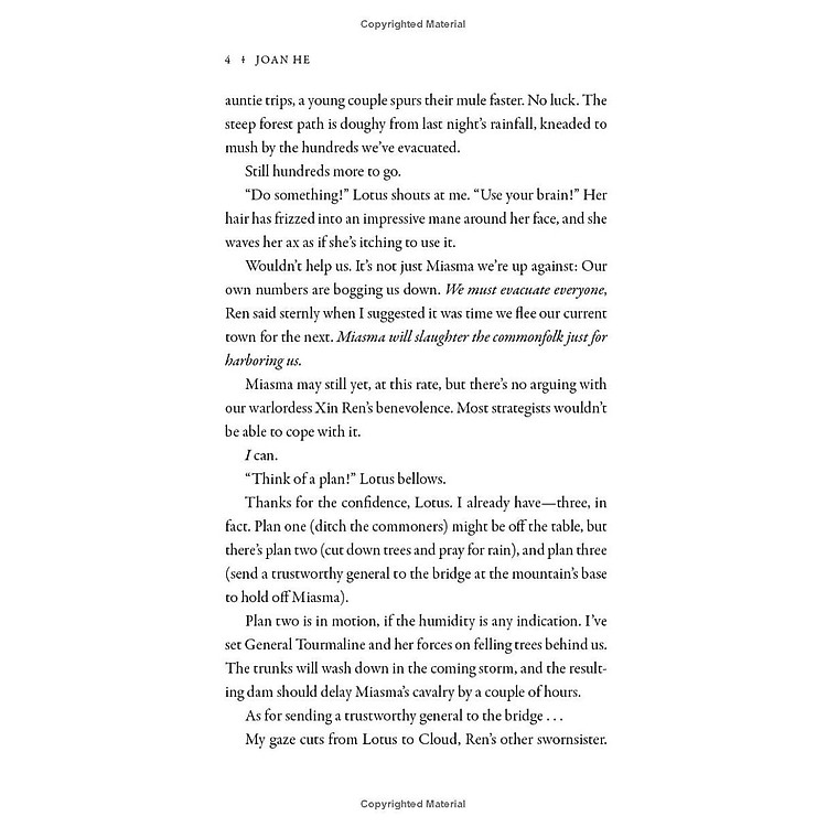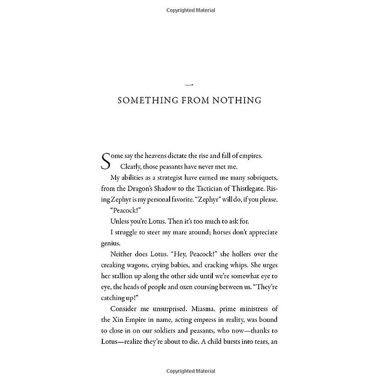Orphaned at a young age, Zephyr took control of her fate by becoming the best strategist of the land and serving under Xin Ren, a warlordess whose loyalty to the empress is double-edged―while Ren’s honor draws Zephyr to her cause, it also jeopardizes their survival in a war where one must betray or be betrayed. When Zephyr is forced to infiltrate an enemy camp to keep Ren’s followers from being slaughtered, she encounters the enigmatic Crow, an opposing strategist who is finally her match. But there are more enemies than one―and not all of them are human.